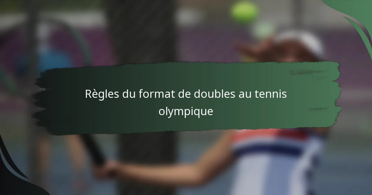 Le format des doubles de tennis olympique présente des règles spécifiques qui régissent la structure des matchs, le système de points et l’éligibilité des joueurs. Comprendre ces règles est essentiel pour les joueurs et les fans afin d’apprécier la dynamique de la compétition.