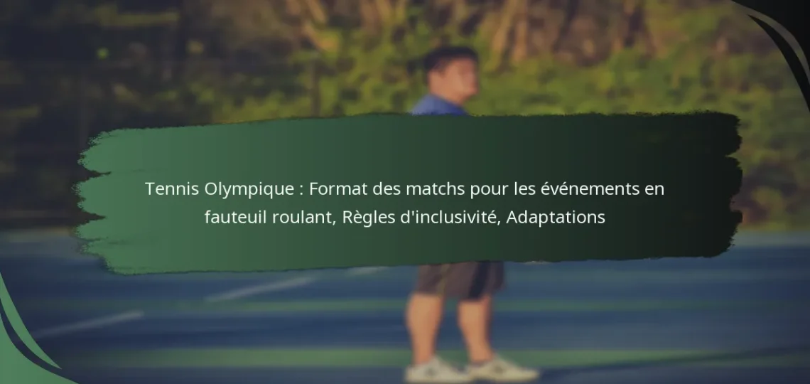 Les matchs de tennis en fauteuil roulant aux Jeux Olympiques suivent un format structuré qui prend en compte les besoins uniques des athlètes en situation de handicap. Les événements sont conçus pour garantir l’inclusivité tout en maintenant l’intégrité compétitive, avec des règles spécifiques régissant la durée des matchs, le système de points et l’arbitrage.