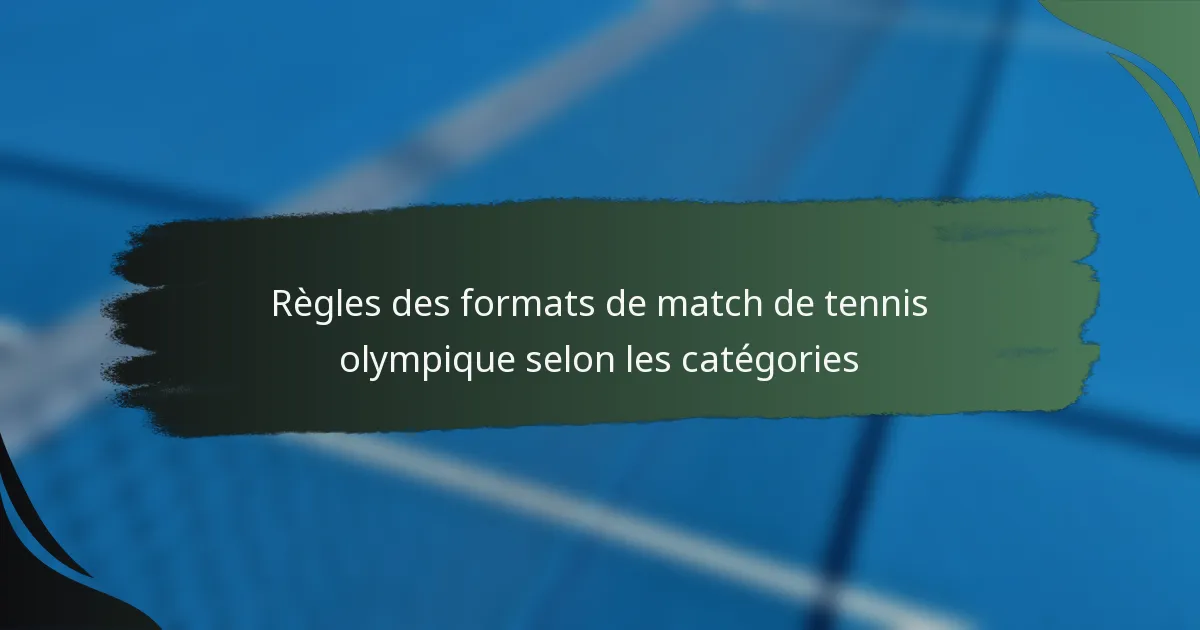 Règles des formats de match de tennis olympique selon les catégories